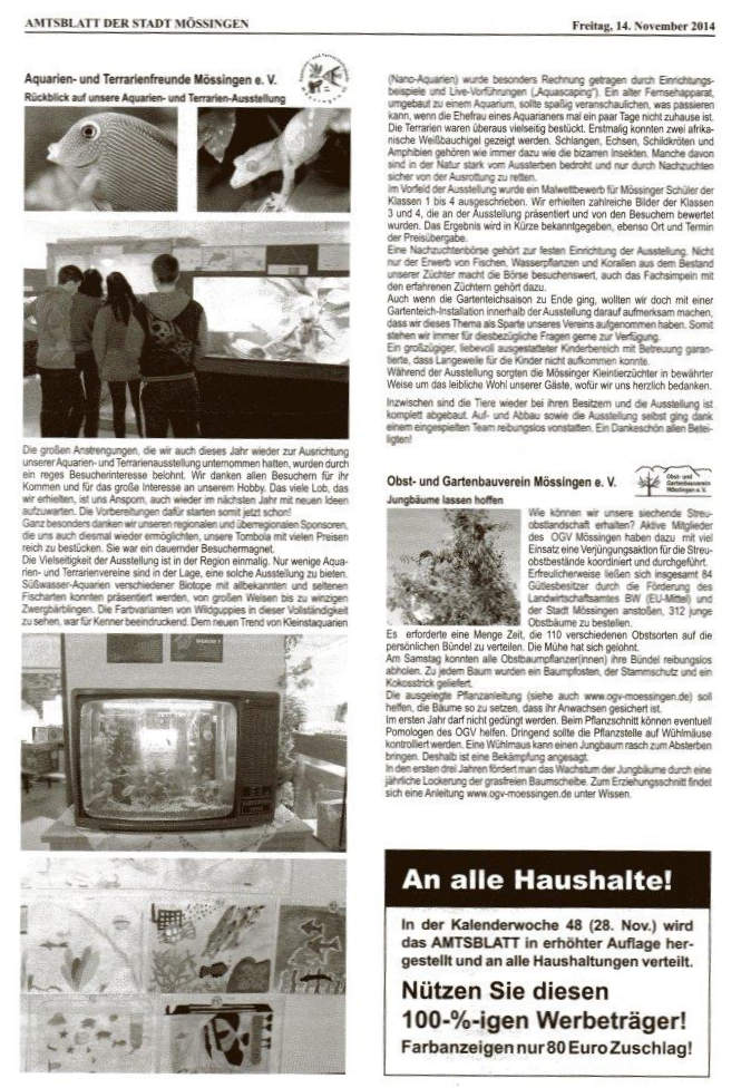 Amtsblatt Mössingen, unsere Anzeige zur Ausstellung